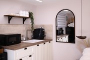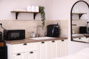 כלים למטבח: קפה, מכונת אספרסו חדשנית, קומקום-חשמלי, מקרר לשתיה ואוכל, מקפיא, מכשיר מיניבר, טוסטר להכנת טוסטים, מכשיר מיקרו, סירים לבישול, מחבתות להכנת אוכל, מבחר כלים להגשה, גז בישול.